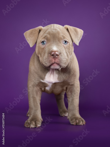 © Петухов Александр, Obraz premium Cute adorable american bully puppy on isolated background looking at camera