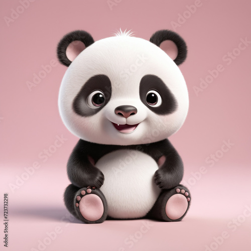 © vian, Naklejka premium Cute adorable baby panda cub sitting, 3D Render illustration on isolated pastel color background