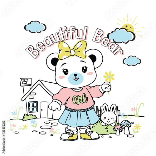 © itsaart, Naklejka premium cute adorable bear with beautiful flower vector