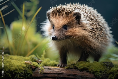 © DenisNata, Naklejka premium Cute adult hedgehog in summer or autumn forest. Young beautiful hedgehog in natural habitat, outdoors in nature.