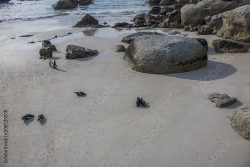 Fototapeta premium Cute African Penguins by the water at sunrise on Boulders Beach, Cape Town,...