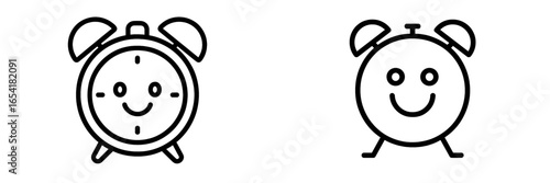 Obraz premium Cute alarm clocks with smiling faces representing morning routine and time management in a simple design