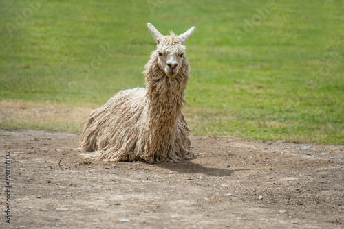 © Юлия Серова, Obraz premium Cute alpaca is walking in Ollantaytambo (Peru)