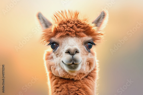 © Claudia Nass, Obraz premium cute alpaca portrait, generative ai illustration