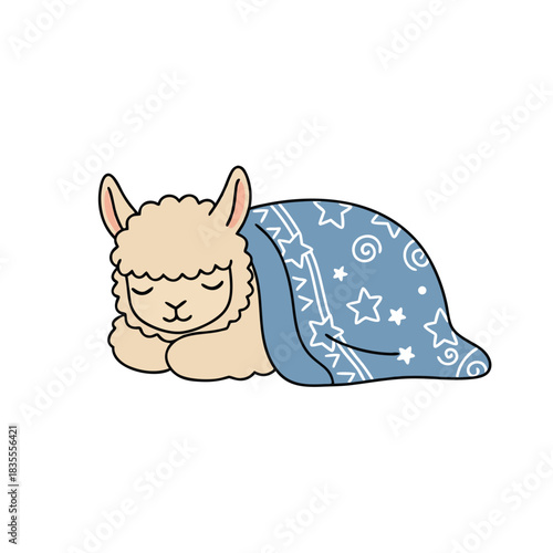 Obraz premium Cute Alpaca Sleeping Under a Starry Blanket.