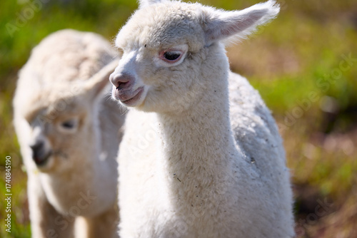 © 亮亮 徐, Naklejka premium Cute alpacas raised in grassland tourist resort