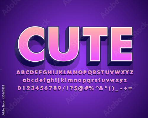 Obraz premium Cute alphabet, 3D bold text effect, modern typeface