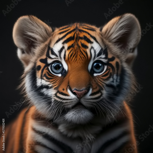 © Sergey Ilin, Fototapeta premium Cute and adorable little tiger. Generative AI