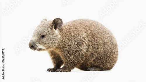 © Theeranan, Fototapeta premium Cute and Adorable Wombat Facing Left on White Background with Fluffy Fur, Small Ears, and Round Body Capturing the Essence of Wildlife and Nature Photography