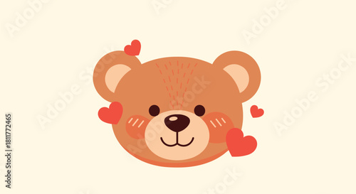 Naklejka premium Cute and charming teddy bear face surrounded by small floating red hearts for...