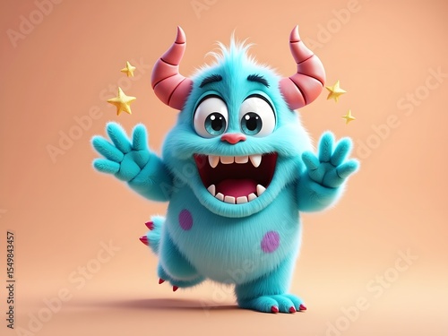 Fototapeta premium Cute and Cheerful Blue Monster Character with Happy Expression