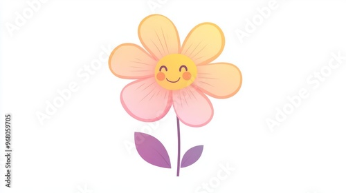 Naklejka premium Cute and cheerful smiling flower illustration with pastel colors, ideal for...