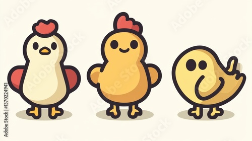 Obraz premium Cute and Colorful Cartoon Chickens Featuring Three Adorable Characters with...
