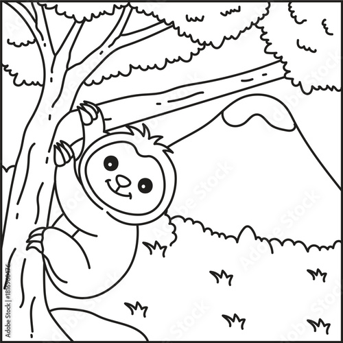 © md kamrujjaman, Naklejka premium Cute and cozy animal coloring page for kids and adults