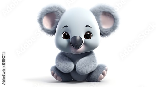 © BozStock, Naklejka premium Cute and cuddly koala bear sitting on a white background. The koala has big, round eyes and a fluffy gray coat.