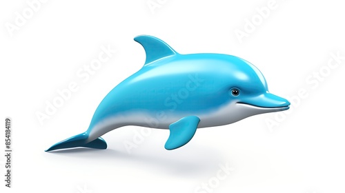 Fototapeta premium Cute and friendly blue dolphin isolated on white background. 3D illustration.