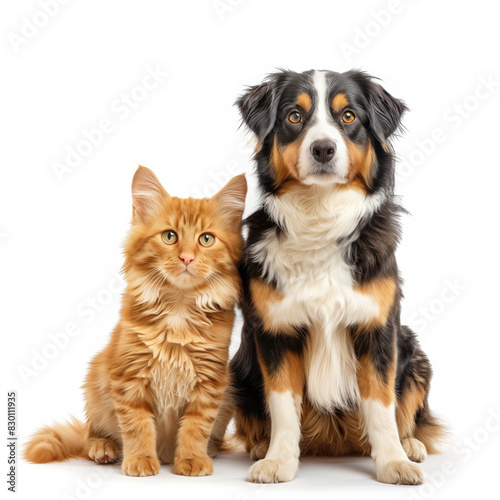 © DeepMind, Obraz premium Cute and Funny Cat and Dog Sitting Together on White Background
