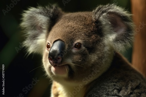 Fototapeta premium cute and fuzzy koala resting on a eucalyptus tree branch. Generative AI