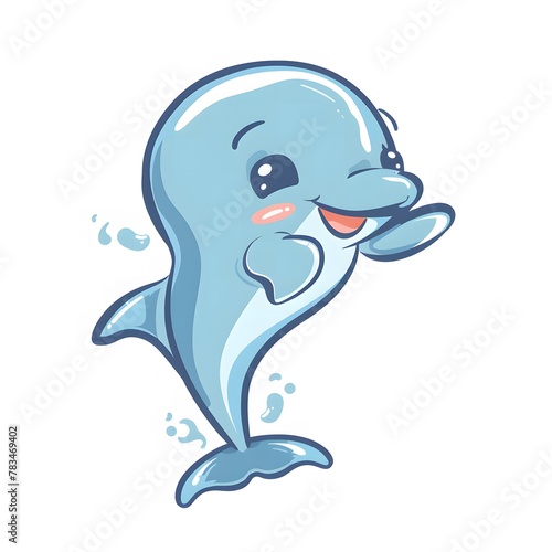 Obraz premium Cute and Happy dolphin Character in Simple Cartoon Style
