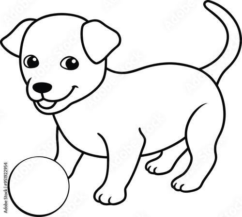 © Bappaditya Roy, Fototapeta premium Cute and playful dog line art drawing ideal for kids to color and enjoy