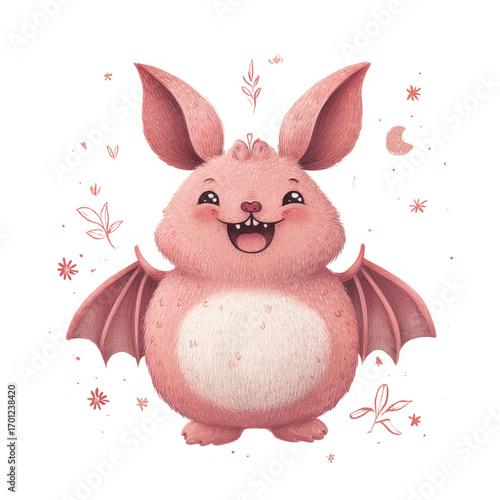 © Sirinya, Obraz premium Cute and Playful Pink Cartoon Bat Character with Adorable Features