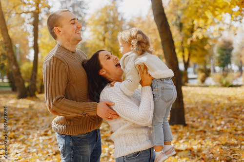 Fototapeta premium Cute and stylish family playing in a autumn field