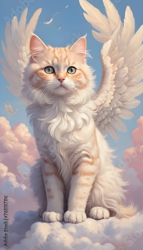 © BigRiveraMx, Fototapeta premium Cute Angel cat in the sky #2