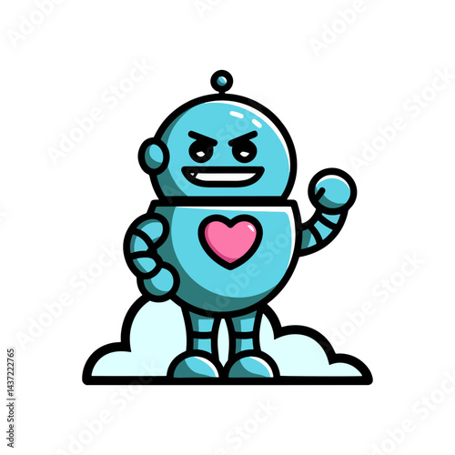 © Shubha Roy, Obraz premium Cute Angry Robot Cartoon with Heart Symbol Vector Illustration