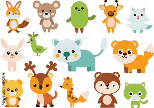 Obraz premium Cute animal cartoon vector illustration set