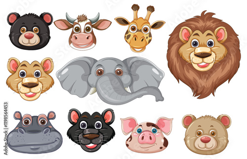 © GraphicsRF, Naklejka premium Cute Animal Faces Vector Illustration