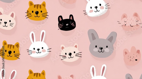 © Horsi, Obraz premium Cute animal heads, various colors, on pink background