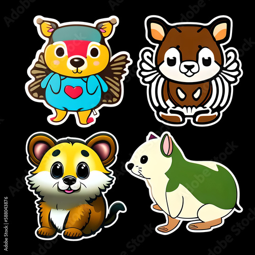 © Riocool, Fototapeta premium Cute animal sticker dog mouse fox cat with outlined isolated to print. Generative AI.