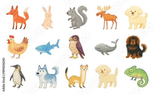 © Rawpixel.com, Fototapeta premium Cute animal stickers collection