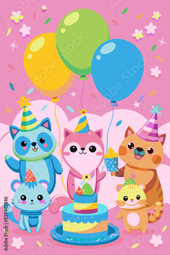 Naklejka premium Cute animals celebrating birthday