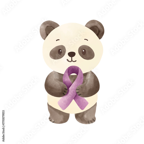 © ปริญดา เสียงสนั่น, Naklejka premium Cute Animals Holding Purple Ribbons