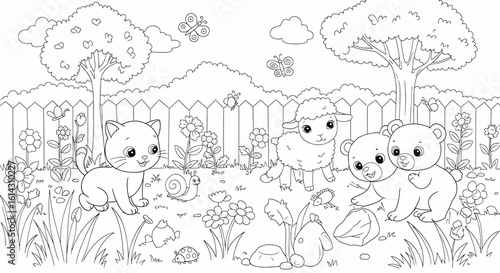 Obraz premium Cute Animals in a Garden Coloring Page