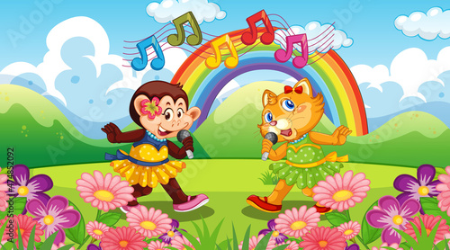 Obraz premium Cute animals performance singing at the park
