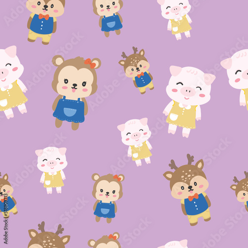 Obraz premium Cute animals seamless pattern on violet background