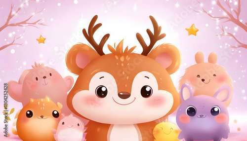 © bcendet, Naklejka premium Cute Animals Winter Scene