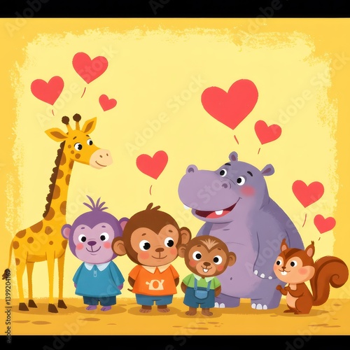 © oleh, Naklejka premium Cute animals with hearts, and friendship.