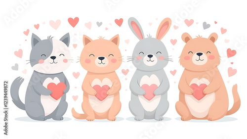 © By, Naklejka premium Cute Animals with Hearts Vector Set for Valentine’s Day