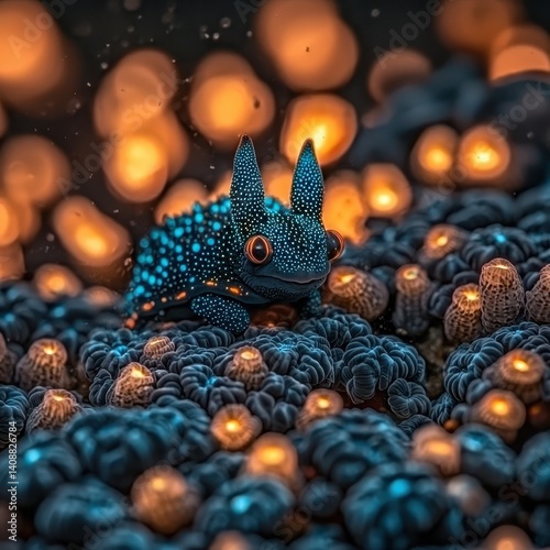 © jirasin, Fototapeta premium Cute Animated Creature Amidst Colorful Coral in Fantasy Underwater Scene