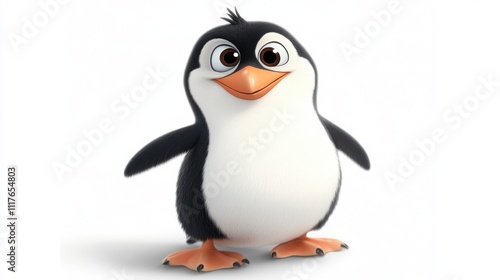 Obraz premium Cute animated penguin character with big eyes and cheerful expression standing on white background