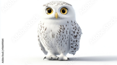 © Adi, Naklejka premium cute animation of snowy owl full body stock image, isolated on a white background