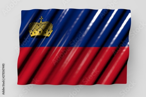 © Dancing Man, Naklejka premium cute any holiday flag 3d illustration. - shining flag of Liechtenstein with large folds lying isolated on grey