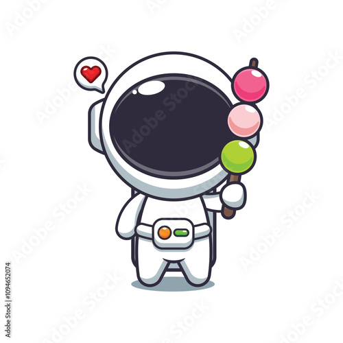 Obraz premium Cute astronaut eating dango cartoon vector illustration