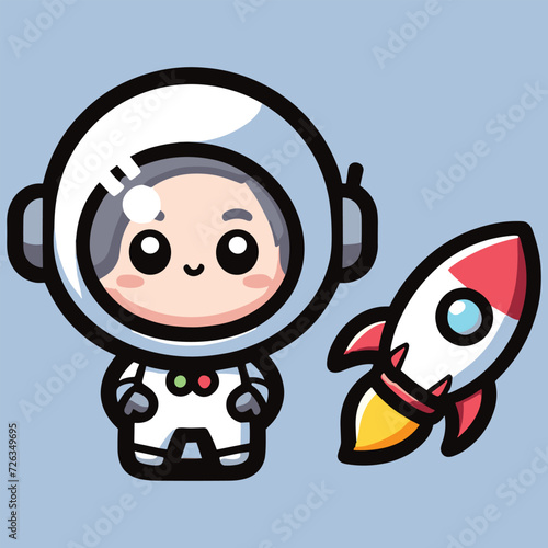 © huyelah, Naklejka premium Cute astronaut happy smiling to you cartoon vector icon illustration. science techno chibi