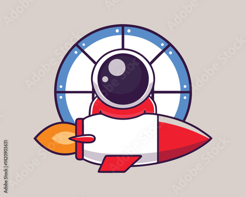 © Qayyum, Obraz premium Cute Astronaut Launching Rocket Illustration - Cartoon Space Takeoff Vector
