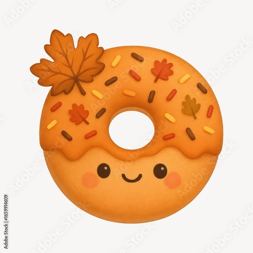 Fototapeta premium Cute autumn-themed donut illustration.