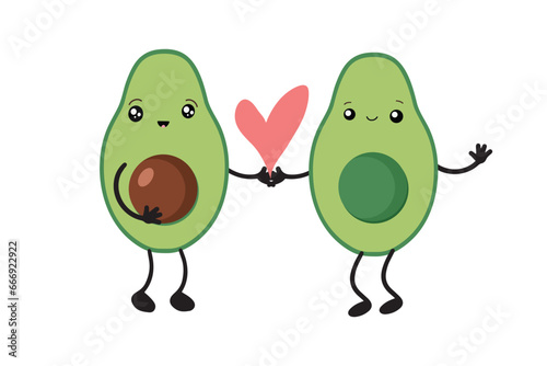 Obraz premium Cute avocado lovers in kawaii style. Avocado fruit in flat design. Vector